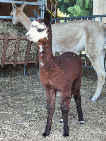 Elfi ist eine sehr sanftmütige Alpaka-dame. Ein Blick in ihre Augen und man vergisst den Alltag..... Elfi hat auffallend hübsche Nachkommen, die alle ihr gutmütiges Wesen geerbt haben. Mittlerweile genießt sie auf unseren Weiden ihren Ruhestand.
